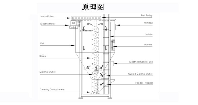 立式攪拌機的工作是利用螺桿的快速選擇將原料從桶體底部由中心提升至頂端,再以傘狀飛拋散落,回至底部,這樣原料在桶內上下翻滾攪拌,短時間內即可將大量原料均勻的混合完畢